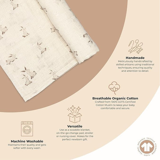 Crane Baby 100% Organic Cotton Bunny Single Baby Swaddle Wrap for Boys and Girls, Gender Neutral Newborn Swaddling Blanket, Baby Registry and Gift, 47 x 47 inches