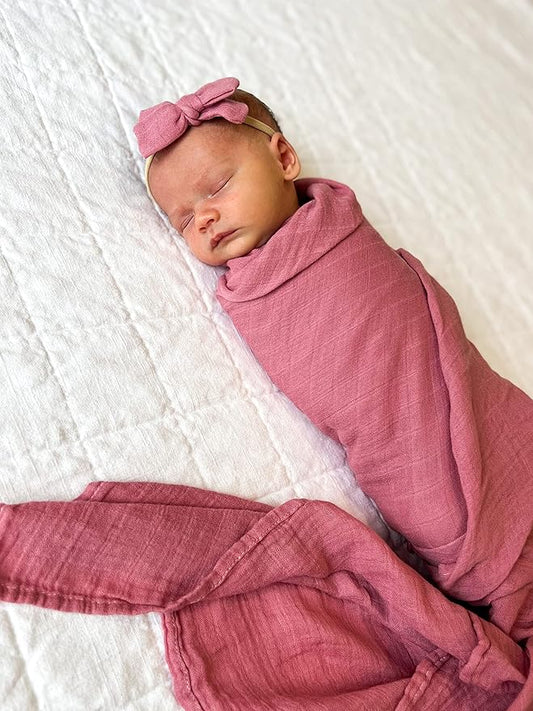 BWD Baby Swaddle Blanket – Ultra-Soft Bamboo Viscose & Organic Cotton Muslin – Lightweight, Breathable, Stretchy – Newborn Essential 47" (Rosewood)