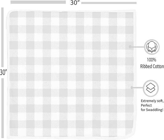 Baby Blankets - Soft Pure Cotton Swaddle Blankets for Boys and Girls - 6 Pack Grey & White Designs - Multi Use - 30 x 30 Inches
