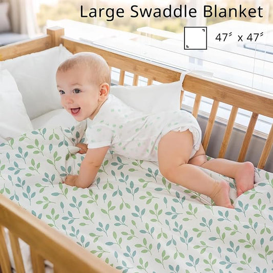 Muslin Swaddle Blankets for Baby Boys and Girls,3 Pack Breathable Soft Receiving Blanket,Large 43.3X 43.3 inches,Newborn Essentials Must Haves (Leaves)
