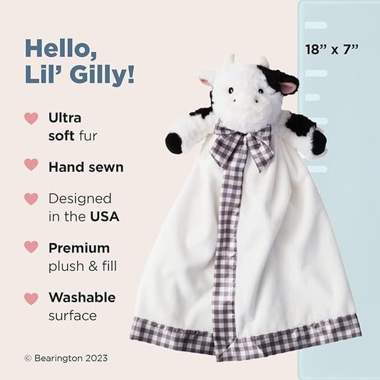 Bearington Lil' Gilly 18 Inch Cow Loveys for Babies - Security Blanket for Babies - Lovies Security Blanket with Stuffed Animal - Cow Lovey