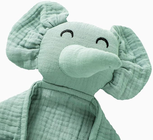 Organic Elephant Lovey for Babies - Muslin Security Blanket, Soft Snuggle Animal for Newborn - Gift for Boys and Girls (Green)