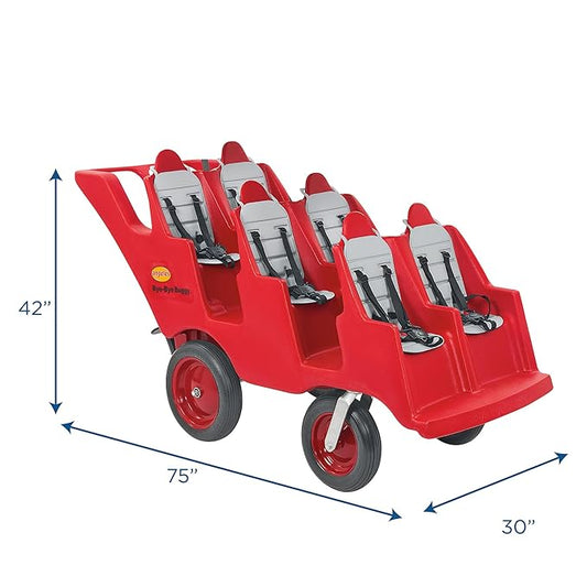 Children’s Factory Bye Bye Buggy 6 Passenger Stroller, Sturdy Daycare Stroller with Fat Tires, Easy-to-Fasten Safety Buckles, Parking Brake, & 360 Pivoting Wheels, Red