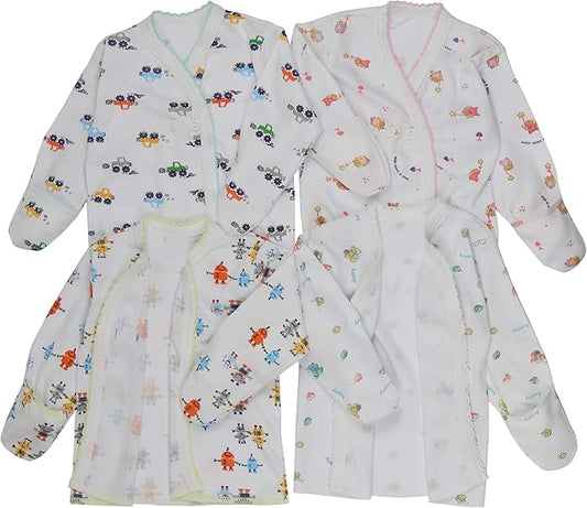 ToBeInStyle Babies' 4 Pack Relaxed Fit Short or Long Sleeve Button Up Kimono Tee Swaddle Shirt