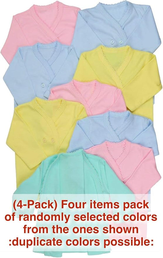 ToBeInStyle Babies' 4 Pack Relaxed Fit Short or Long Sleeve Button Up Kimono Tee Swaddle Shirt