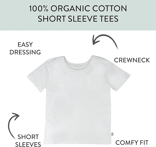 HonestBaby Unisex-Baby 5-Pack Short Sleeve T-Shirts 100% Organic Cotton Baby, Toddler, Little Kid, Boy, Girl, Unisex