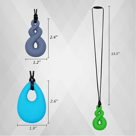 Chew Necklace for Boys and Girls, Silicone Chew Toys for Kids Teardrop Twist Pendants, Chewy Necklace Sensory for Autism or Oral Motor Special Needs BPA Free - 4 PCS Set