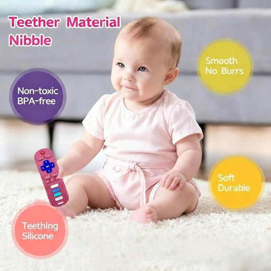 Baby Teether Toy,TV Remote Control Shape Teething Relief Chew Toy for Infants 3-24 Months, BPA Free, Pink