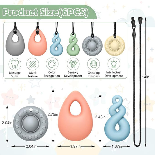 Chew Necklaces for Sensory Kids, 6 PCS Sensory Chew Necklaces for Boys Girls with ADHD, SPD, Autism, Chewing Needs, Silicone Chewy Necklaces Chew Toys for Adults Used for Reliving Anxiety and Stress