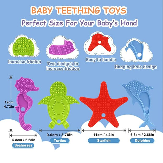 Baby Teether [Original] - Silicone Teething Toys for Babies, Ocean Sea Animals Shape Teething Relief Chew Toy | Stuff Essential and Gift for Toddler Infant Boy Girl 3+ Months | 4 Pieces