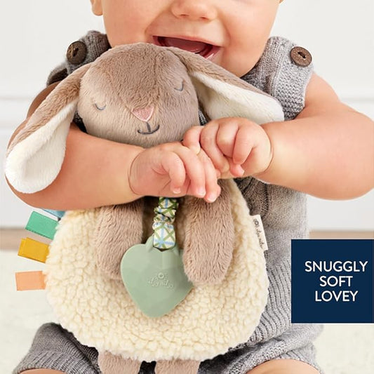 Itzy Ritzy - Itzy Lovey Including Teether - Baby Lovey with Teether, Textured Ribbons & Dangle Arms - Features Crinkle Sound, Sherpa Fabric and Minky Plush (Taupe Bunny)