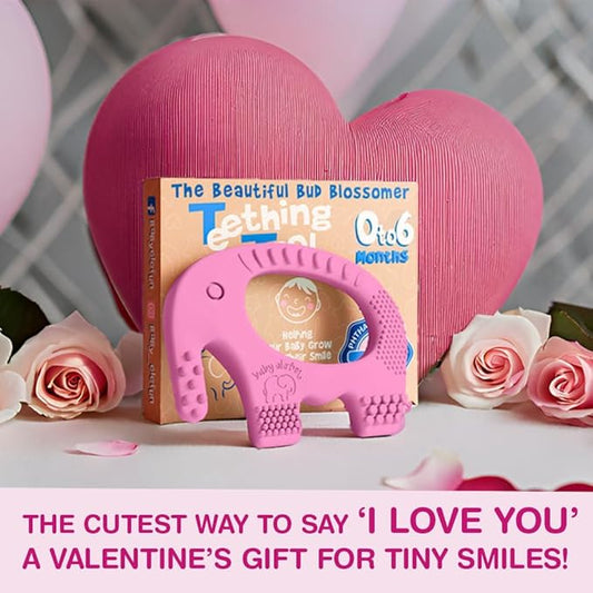 Cute Valentines Day Baby Gift - Baby Elefun Teething Toys for Babies Age 0 to 6 Months - 5X Pain Relief Smart Teether, Zero Developmental Delay Pink Silicone Teething Toy for Infants and Baby Shower