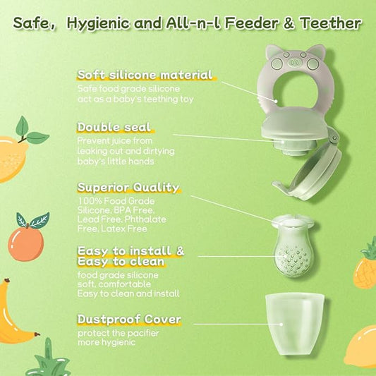 Baby Solids/Frozen Fruit Feeder Pacifier, Infant Teether Toy 4M+, BPA-Free Silicone Pouch & Nipple, Safely Introduce Solids, Teething Relief, 2-Pack - Gray (Piglet)