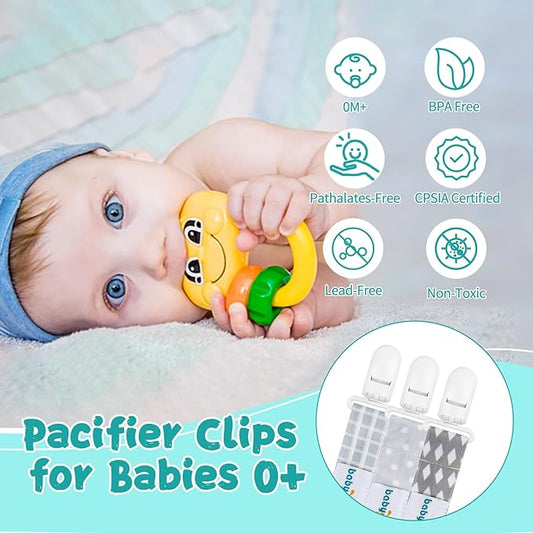 6-Pack Silicone Pacifier Clips for Babies, Safe Teething Beads, Rust-Free Holders, Baby Boy and Girl Essentials, Newborn Must-Have Accessories, BPA-Free