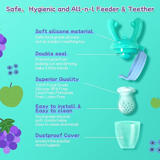 Baby Fruit Food Feeder - Silicone Nibble Tray Combo - Breastmilk Popsicle Mold for Cooling Relief, BPA Free Mesh Feeder for Infant Self Feeding (Deer Green + Pineapple)