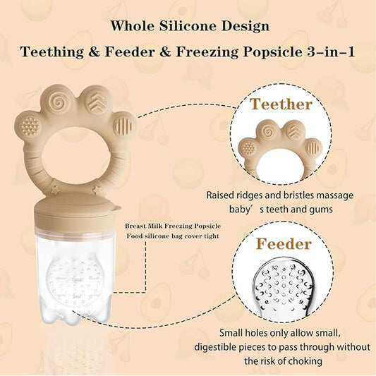 Baby Fruit Food Feeder - Silicone Nibble Tray Combo - Breastmilk Popsicle Mold for Cooling Relief, BPA Free Mesh Feeder for Infant Self Feeding (Claw Beige + Pineapple)