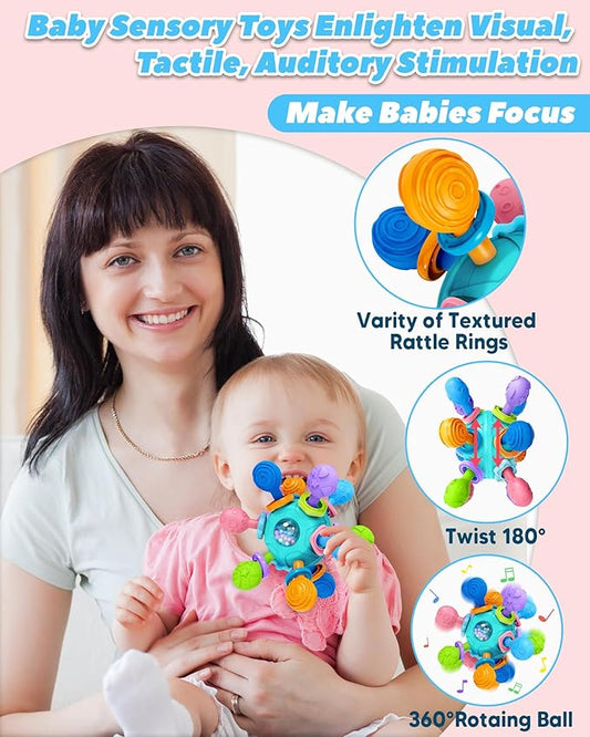 Baby Teething Toys for 0-6 6-12 Months Ages 0-2, Tummy Time Montessori Toys for Babies 0 3 6 9 12 18 Months, Newborn Infant Sensory Toys, Baby Shower Gifts for Boys Girls