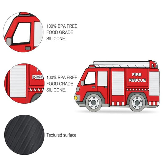 Baby Silicone Teether,Sensory Chew Toys,BPA Free Soft and Effective Infant Teething Pain Relief Toys,Freezer Safe,Food Grade Silicone,Best Shower Gift for Boys and Girls (Fire Trcuk).