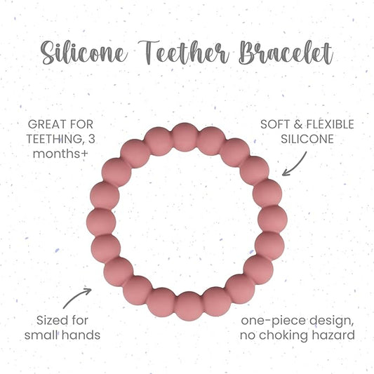 Baby Teether Rings, 100% Silicone Teether Bracelets for 3m+ Babies to Self-Soothe, BPA Free & Phthalate Free - Includes 4 Neutral Baby Rings