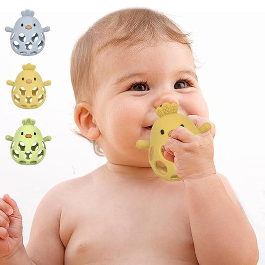 3 Pack Baby Teething Toys for Infants 0-12 Months, BPA Free Silicone Teether Toy, Baby Essentials for Boys Girls, Soft Textured Chew Toys for Teething Relief, Easy to Hold & Clean, Newborn Gifts