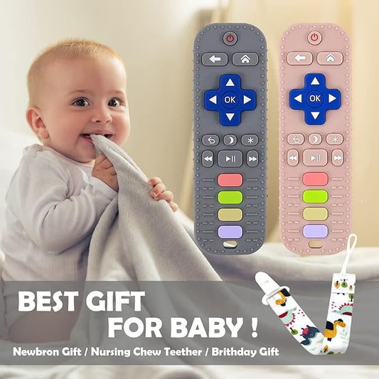 2 Pack Remote Teether for Toddlers, Silicone Teething Toys for 6-12 Months, Remote Control Shape Baby Teethers - Chew Toys Gift (Gray+Pink)