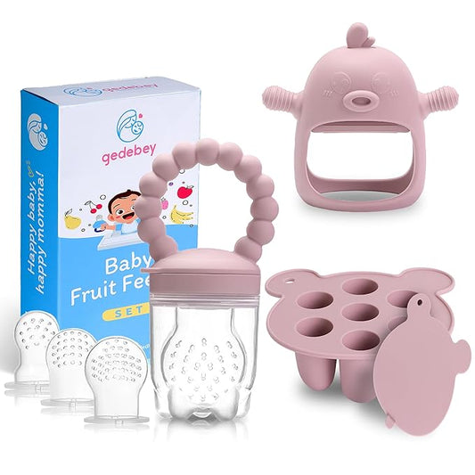 Baby Fruit Feeder Pacifier - 3 Pack | 1 Baby Food Feeder & 1 Baby Teether & 1 Baby Popsicle Molds | Breastmilk Popsicle molds | Baby Teething Toys | Baby Fruit Food Feeder Pacifier Babies (Blush)