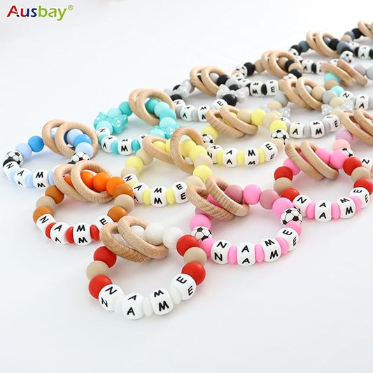 Personalized Baby Rattle and Teether Ring Toy for Boys and Girls Gift,Custom Name Rattle Toy Newborn Teether Ring (Oatmeal)