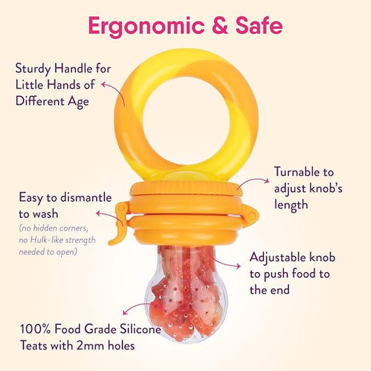 NatureBond Baby Food Feeder/Fruit Feeder Pacifier Nibbler (2 Pack) - Infant Teething Toy Teether Weaning in Appetizing Colors | + Additional Silicone Sacs