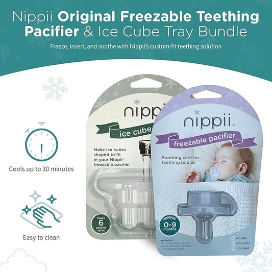 Freezer Teether Pacifier & Ice Cube Tray – Soft Silicone Freezable Teething Paci for Baby Teething Relief - Cold Teething Toy 0-9 Months - BPA Free, Medical Grade & Easy to Clean – USA Bundle