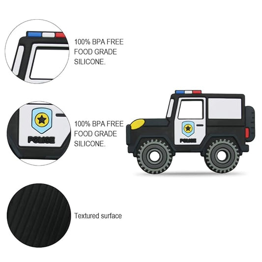 Baby Silicone Teether,Sensory Chew Toys,BPA Free Soft and Effective Infant Teething Pain Relief Toys,Freezer Safe,Food Grade Silicone,Best Shower Gift for Boys and Girls (Police Car)