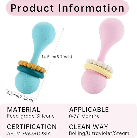 Baby Shaker Grab Montessori Rattle 6 to 12 Month Infant Teether Chew Stacking Toys Sensory Educational Shower Gift