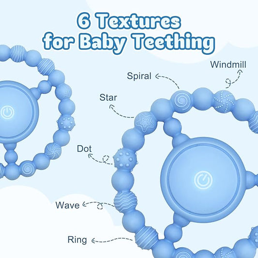 Vibrating Teething Toy with 3D Multi-Texture, Food-Grade Silicone Sensory Chew Toy for Autism Kids and Baby 3-18 Months, Baby Teething Ring for Teething Relief, Light Blue