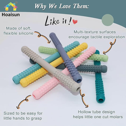 Teething Toys 3-6 Months 8 Pack, Silicone Teethers for Babies Nursing, Teething Tubes Sticks for Babies 6-12 12-18 Months, Autism Sensory Toys for Kids Chewing, Biting