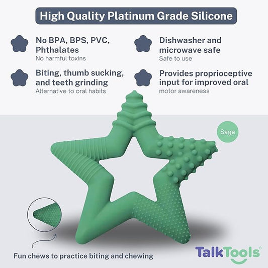 TalkTools Sensory Teeny Teether Star - Alternative to Thumb Sucking and Pacifiers, Enhances Oral Motor Awareness, Perfect for Children with Sensory Needs, Oral Development Aids (Sage)