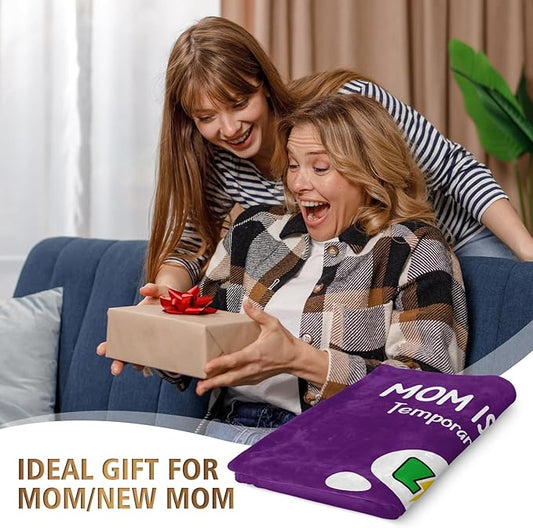 Craftique Gifts for Mom Birthday Christmas- Funny Soft Mom is Charging Blanket- New Moms Gifts for Women, Practical Blanket Throw for Napping Travel, 80”×60”