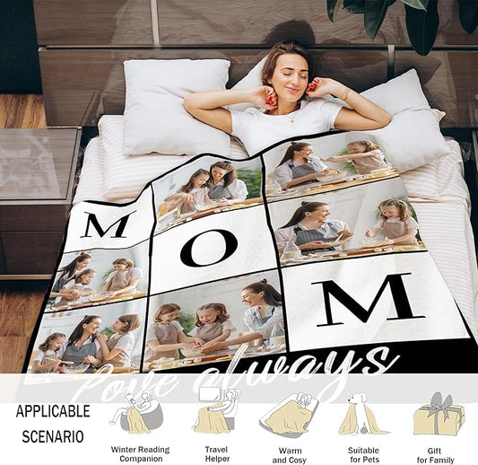 Personalized Photo Blanket for Mom - Custom Birthday &