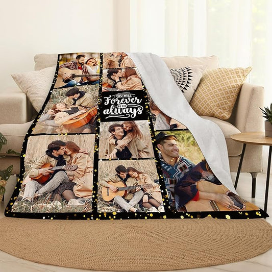 Custom Photo Blanket, Personalized for Couple, Boyfriend & Girlfriend - Perfect for Christmas & Birthday Gifts
