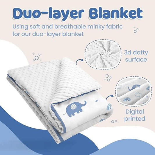 Elephant Minky Baby Blanket 30 x 40 Inches for Boys Girls, Soft Plush Receiving Blanket with Dotted Back, Gift for Toddler Newborn Infant Christmas Birthday Baby Shower