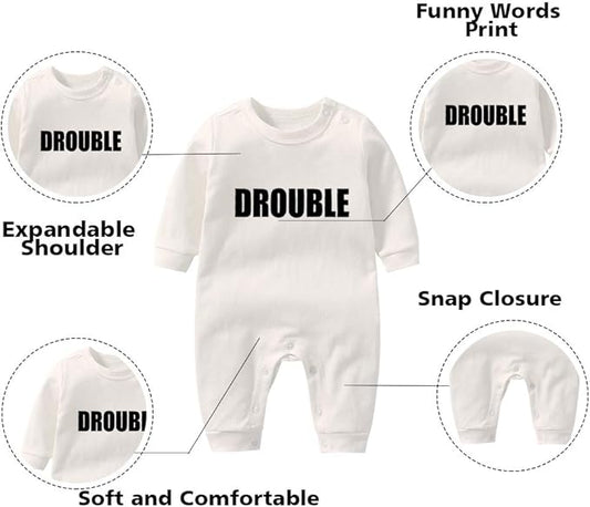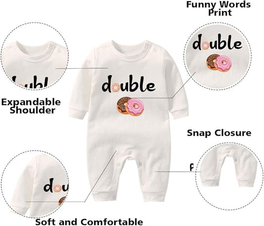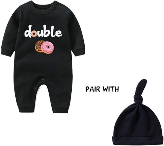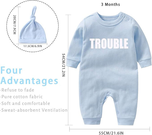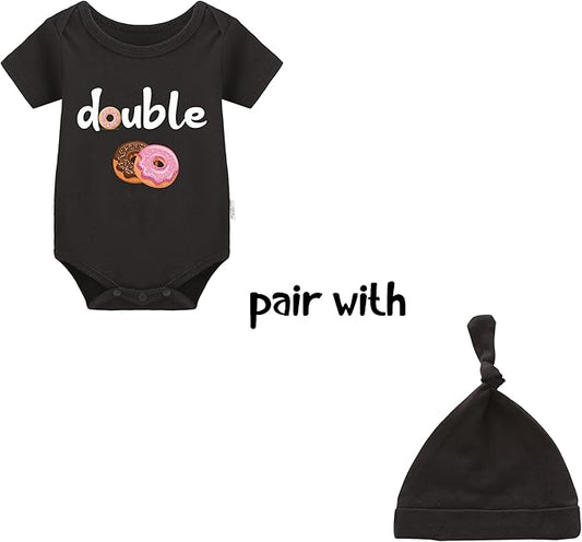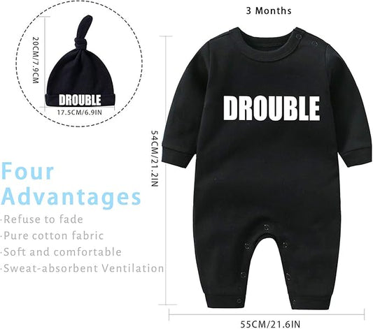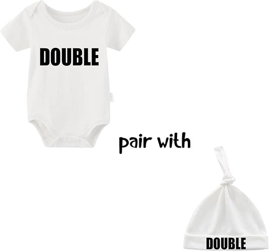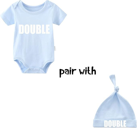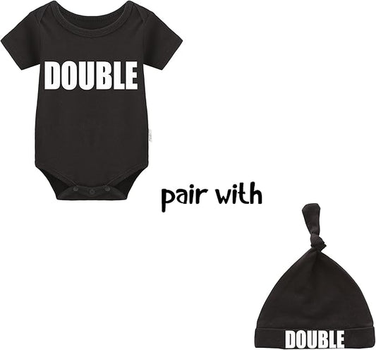 YSCULBUTOL Baby Twins Bodysuits Funny Double Trouble Cute Girl Romper Twin Jumpsuits Hat Set