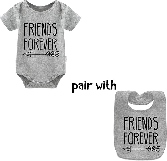 YSCULBUTOL Baby Twins Bodysuits Best Friends Forever Baby Clothes Set with Bibs Girl Outfit with hat