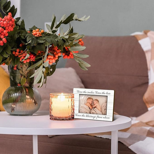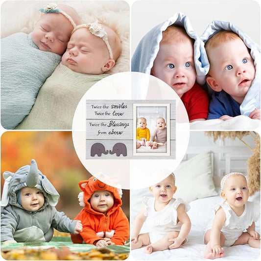 Twins Baby Items 4x6 Picture Frame, Twin Mom Gifts Wooden Picture Frame, Twins Baby Gifts for Girls Boys Mom, Twice the Blessings from Above Decorative Photo Frames for Table Desk Decor