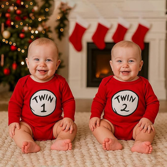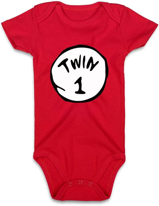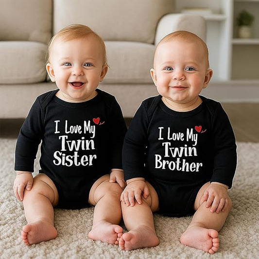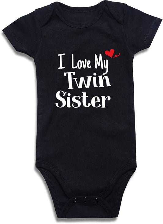DEFAHN Funny Twins Baby Bodysuits Boys Girls Rompers 2 Pack Twin Matching Clothes Outfits for Newborn Infant