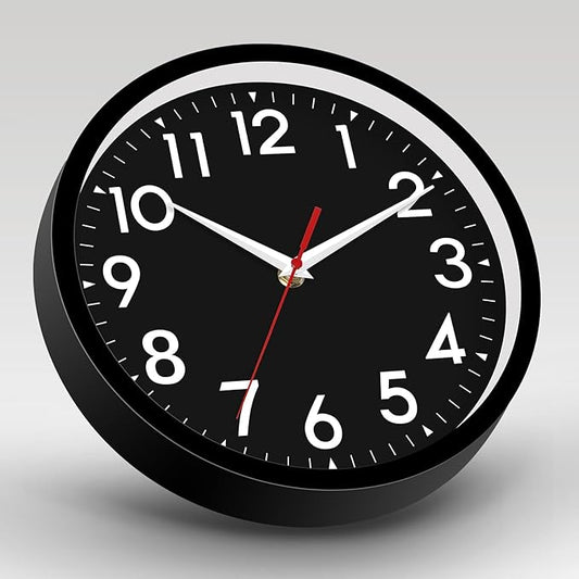 Wall Clock Small Analog 8 Inch Silent Non Ticking Battery Operated Modern Simple Decorative for Kitchen Office Bedroom Bathroom Living Room(Black)