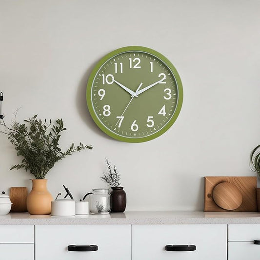 Faupugh 12 inch Silent Wall Clock, Battery Powered Wall Clock, Suitable for Home, Office, School, Kitchen, Bedroom, Living Room (Grass Green)