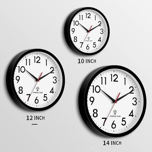 Atomic Wall Clock Analog 10 Inch Battery Operated Modern Decorative for Living Room Kitchen Office Bedroom Bathroom(Black)
