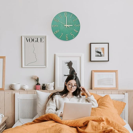 Faupugh Wall Clock 12 inch Silent Wall Clock, Battery Powered, Suitable for Home, Office, School, Kitchen, Bedroom, Living Room (Green)