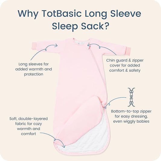 Baby Sleep Sack Long Sleeve Wearable Blanket 1.0 TOG, Premium Soft Infants Sleeping Bags with 2-way Zippers