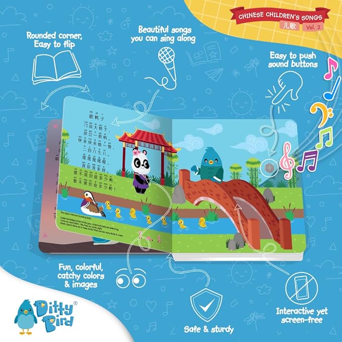 - π‘ 1 Bilingual Sound Book, Tons of Rewards: More than keeping your tots entertained for hours, Ditty Bird Books with sound are with you in your child's learning & development. Use these books for 1 year olds to help your kids learn a new language, get familiar with Chinese, expand their vocabulary, cognitive, fine motor & auditory skills.