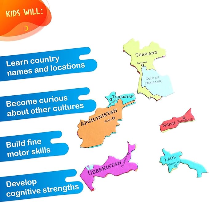 - PERFECT FOR FAMILY BONDING: These map of Asia jigsaw country puzzles offer a great way for families to bond. Our kids map puzzle builds teamwork, communication, and quality time. Enjoy this educational geography for kids activity with the whole family with our puzzle gameโa fun and easy way to learn states and capitals for kids and adults.