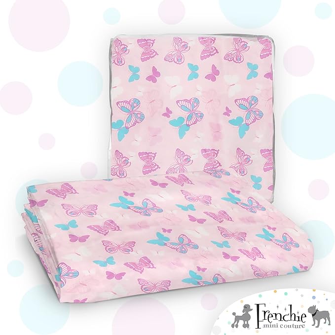 Fitted Crib Sheet Single, 100% Woven Cotton, Toddler Fitted Sheet, Fits Standard Size Baby Mattress 28 x 52 x 8in, Butterfly (Pink)